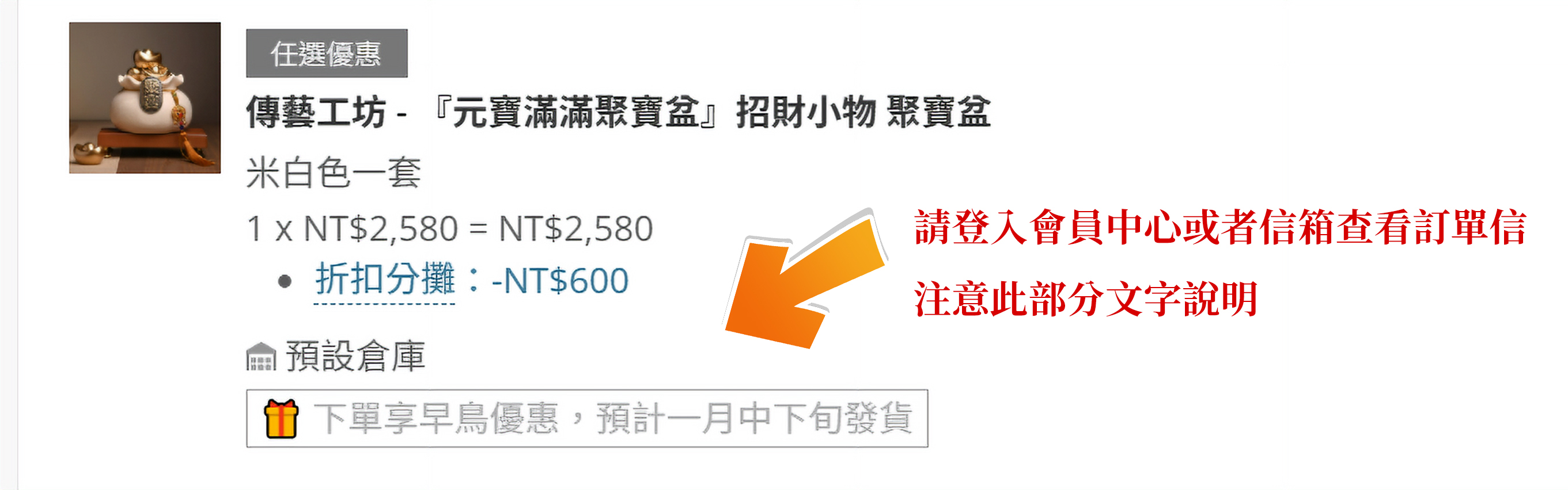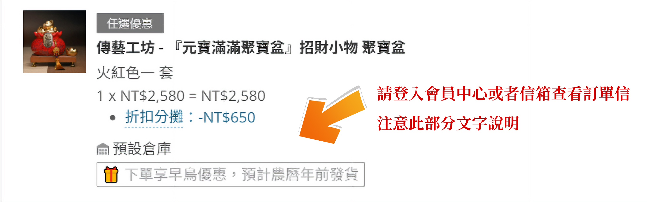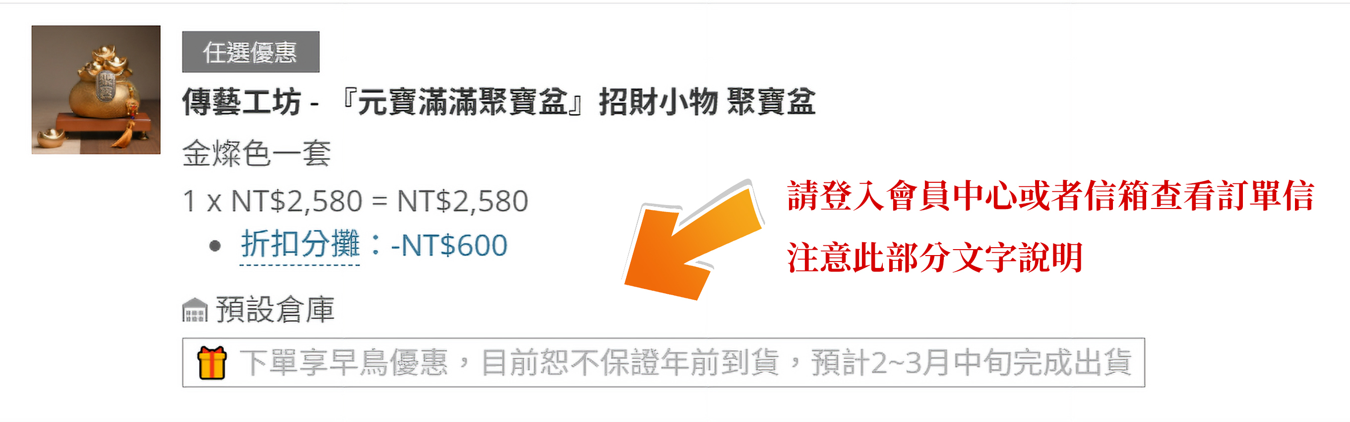 【元寶滿滿聚寶盆】年節預購出貨公告,請點此