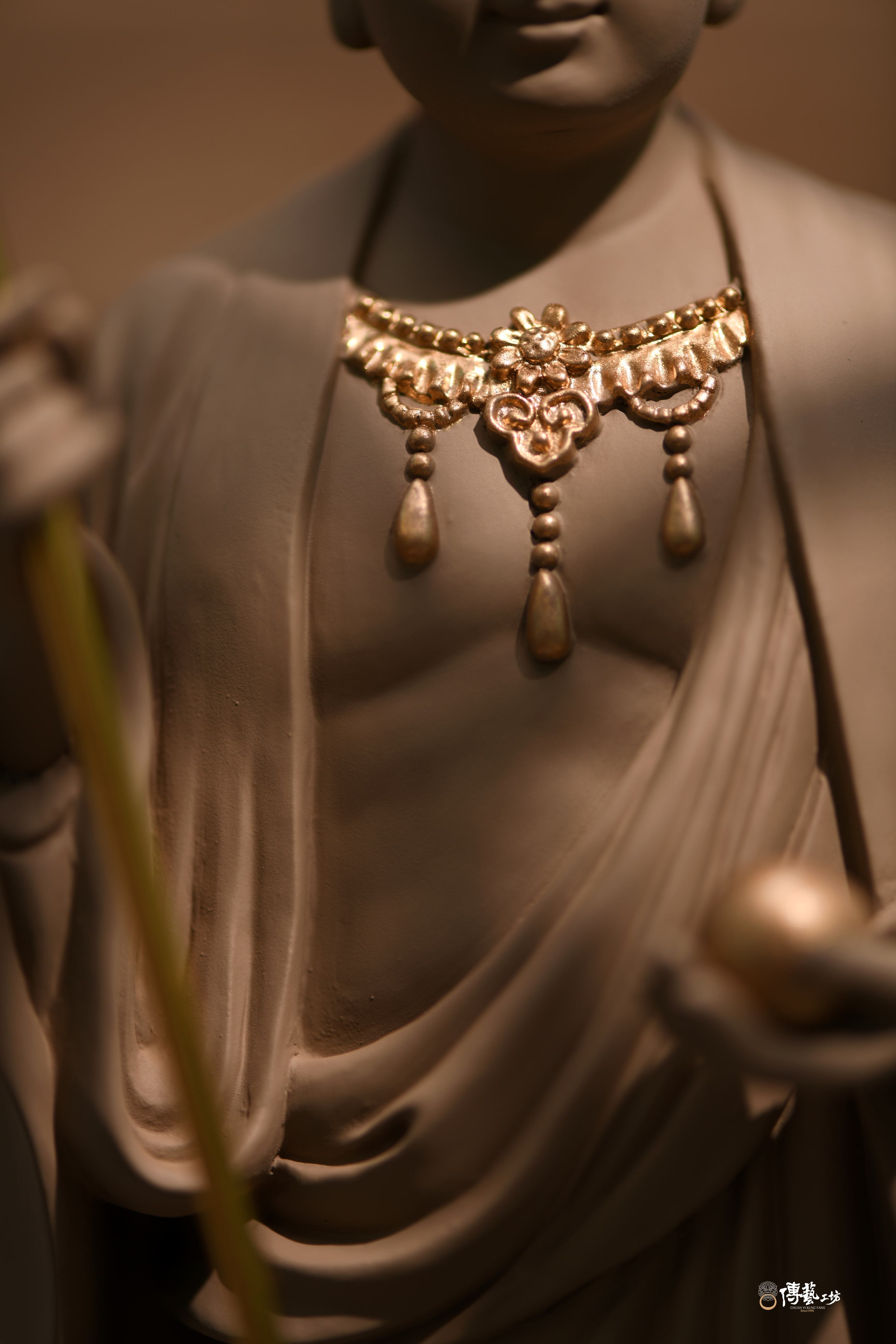 這尊《慈悲大願》,是由傳藝工坊與我們的藝術家成波老師共同創作,深刻體現了地藏菩薩不懈救度的精神與力量。這件作品不僅表達了我們對地藏菩薩的敬仰,還承載著我們在面對生活挑戰時的真摯情感。