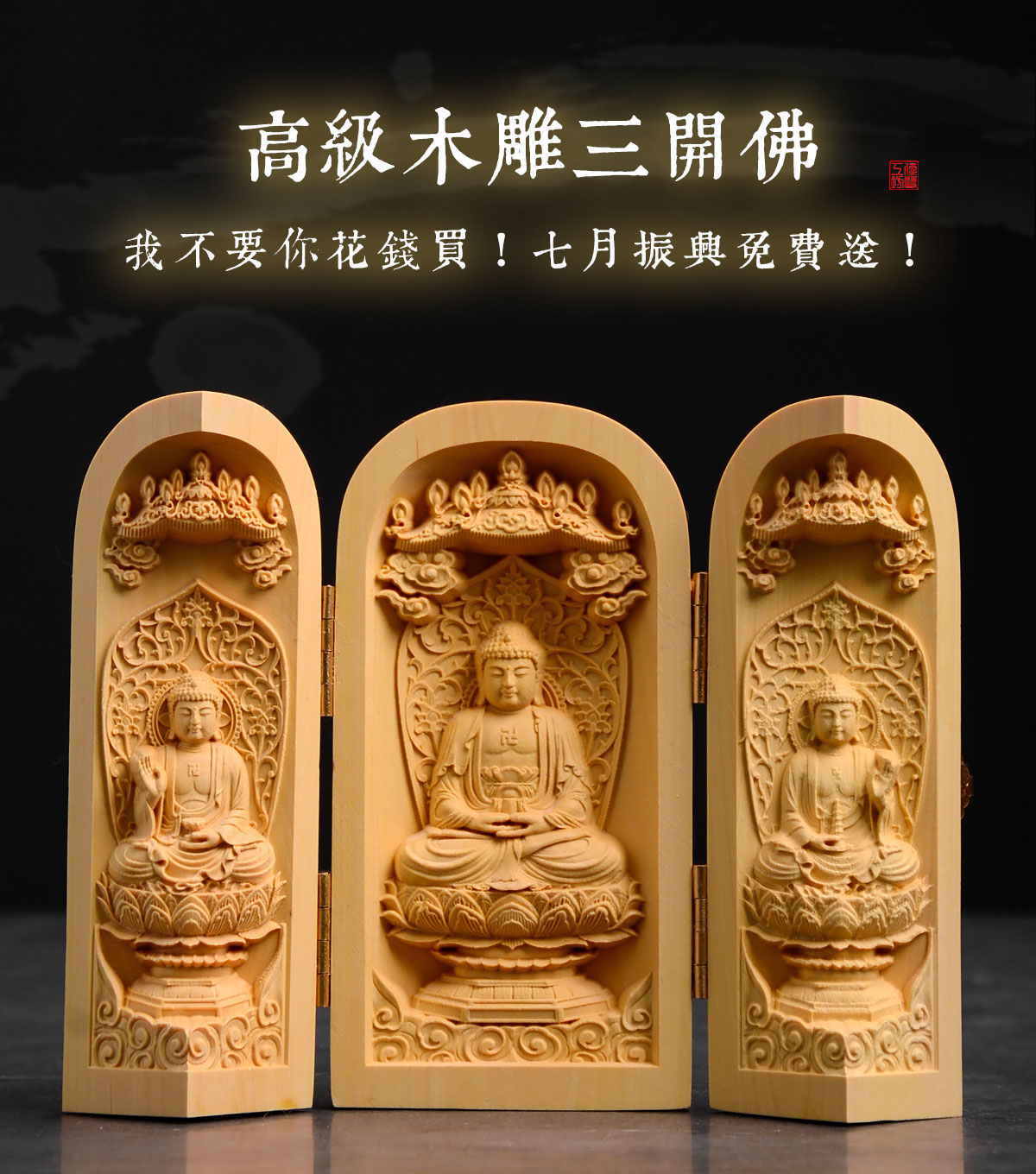 不只免運,再送千元的「高級木雕三開佛」!