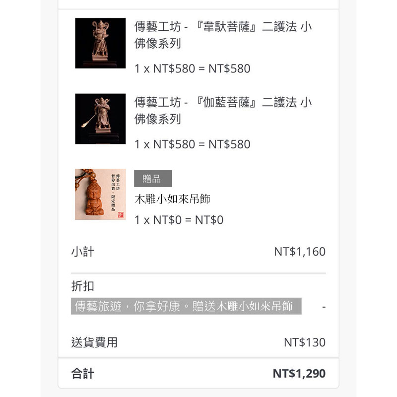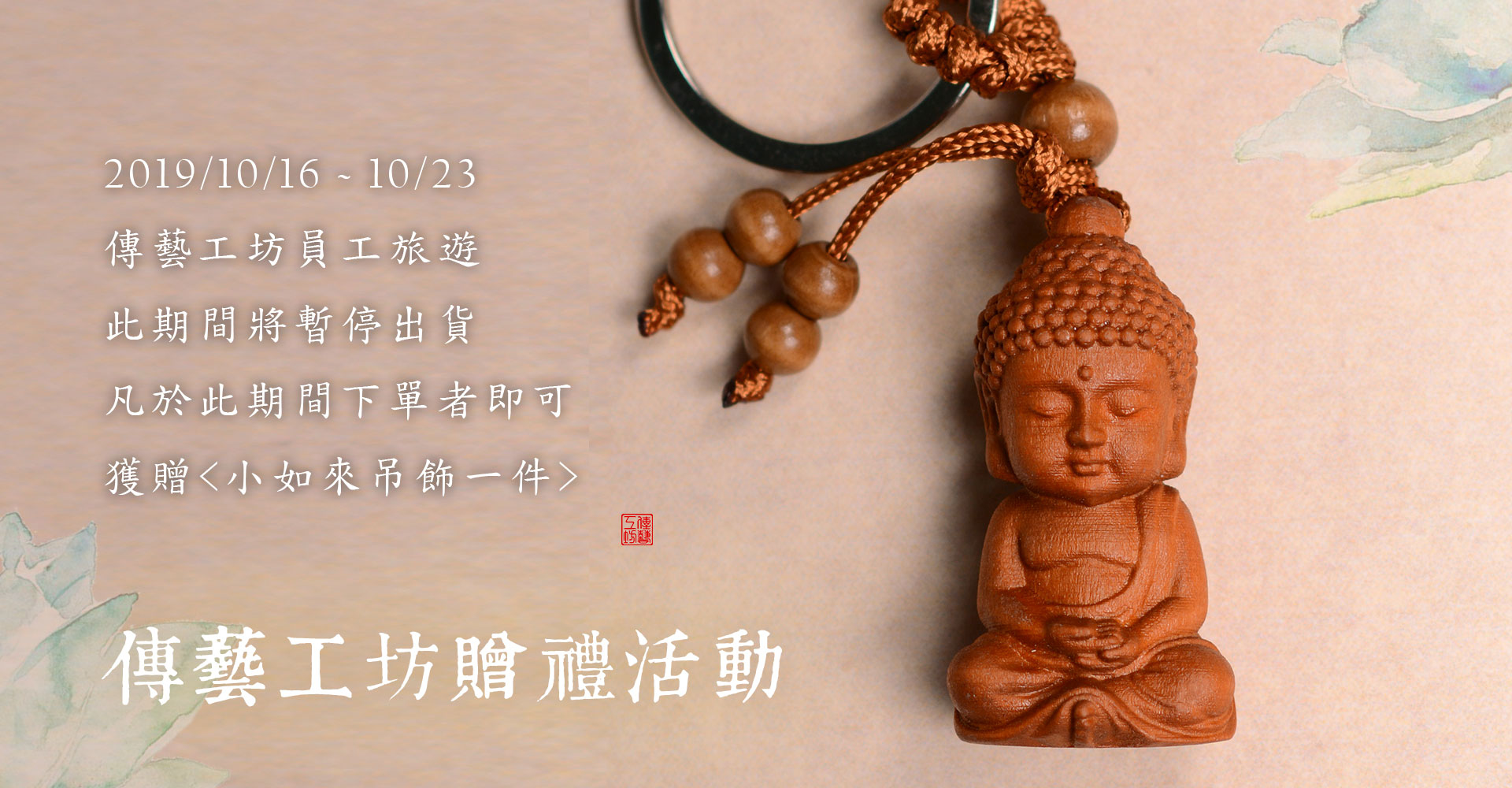 活動期間於官網下單者,皆可獲贈木雕小如來吊飾一件