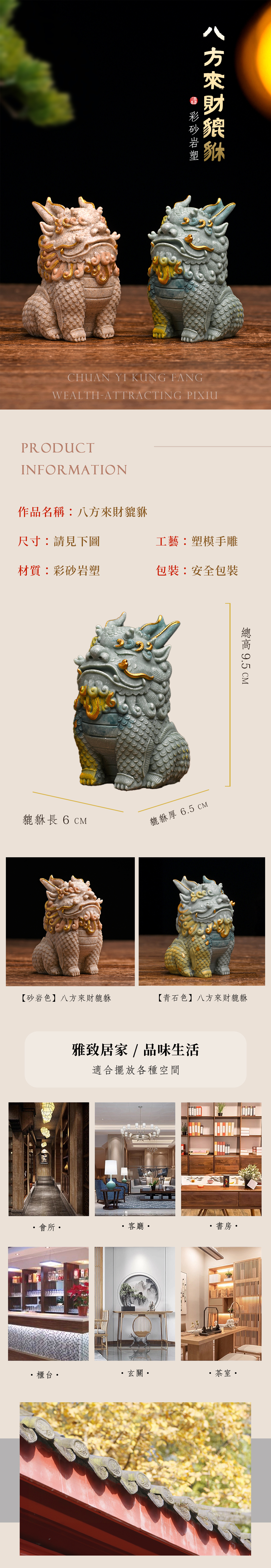 傳藝工坊 - 『八方來財貔貅』祥獸 彩砂石塑 兩種色彩可選