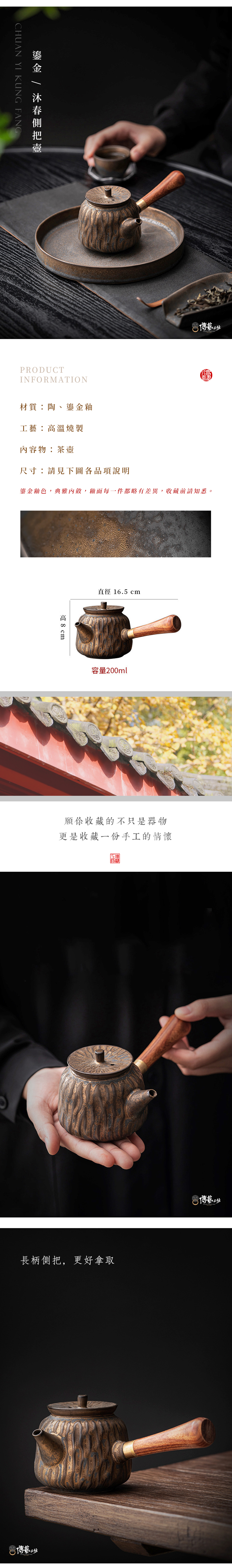 傳藝工坊 - 『 鎏金 沐春側把壺 』茶壺
