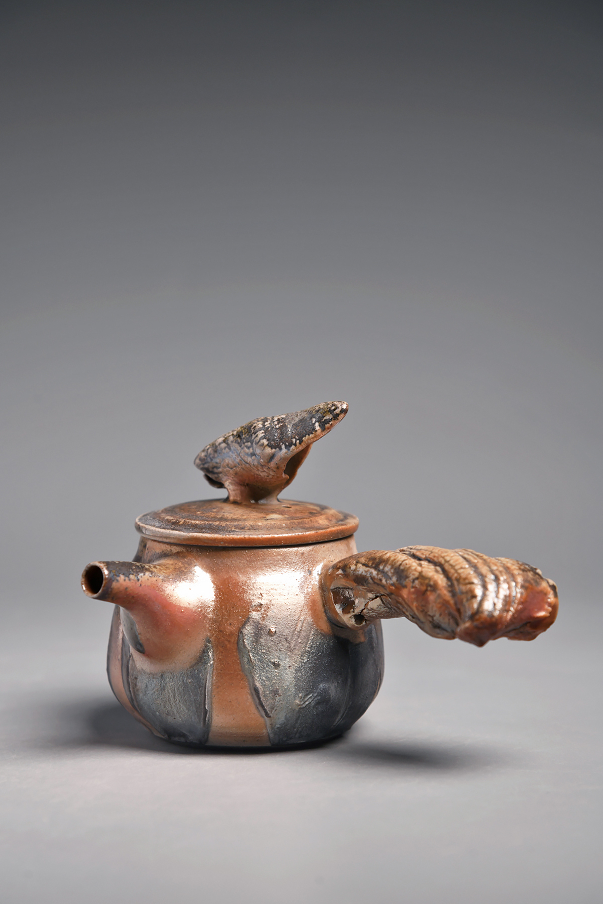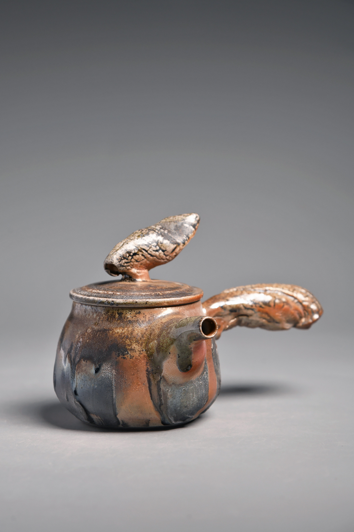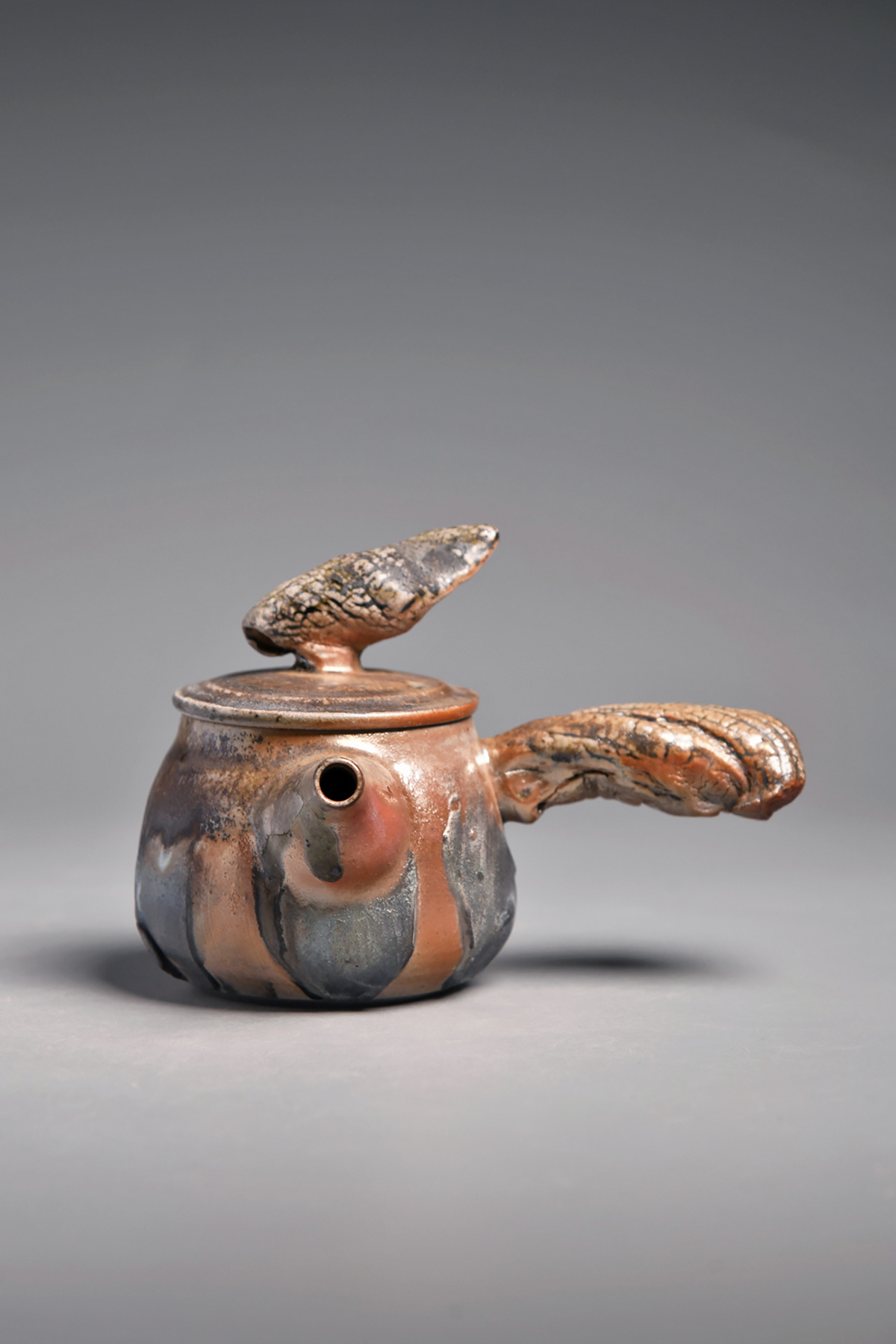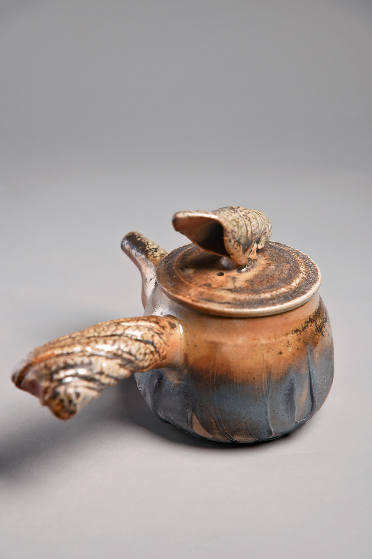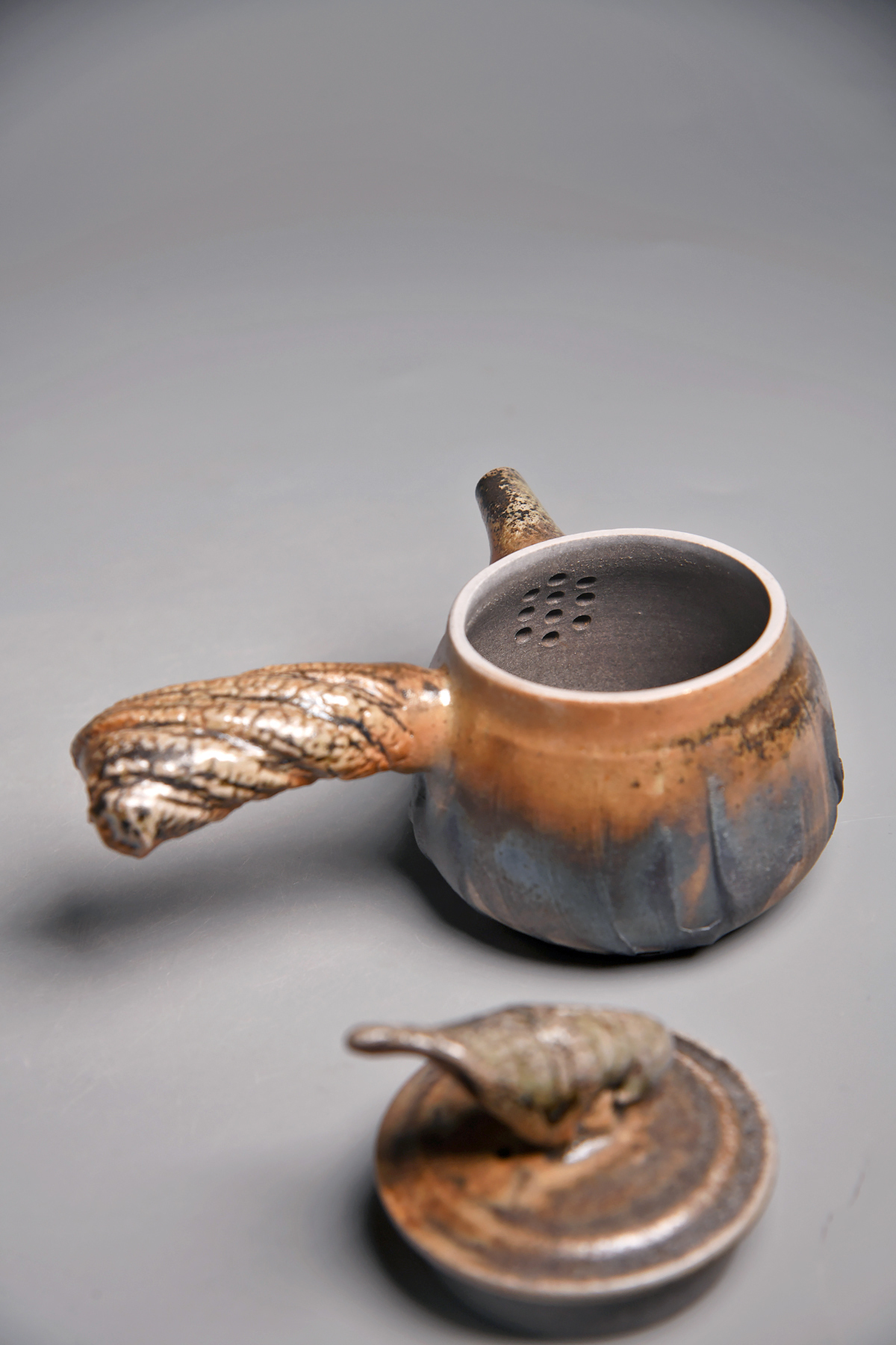 傳藝工坊 - 『松嵐。手捻肌理柴燒側把壺』孤品 藝術家/潘俊佑