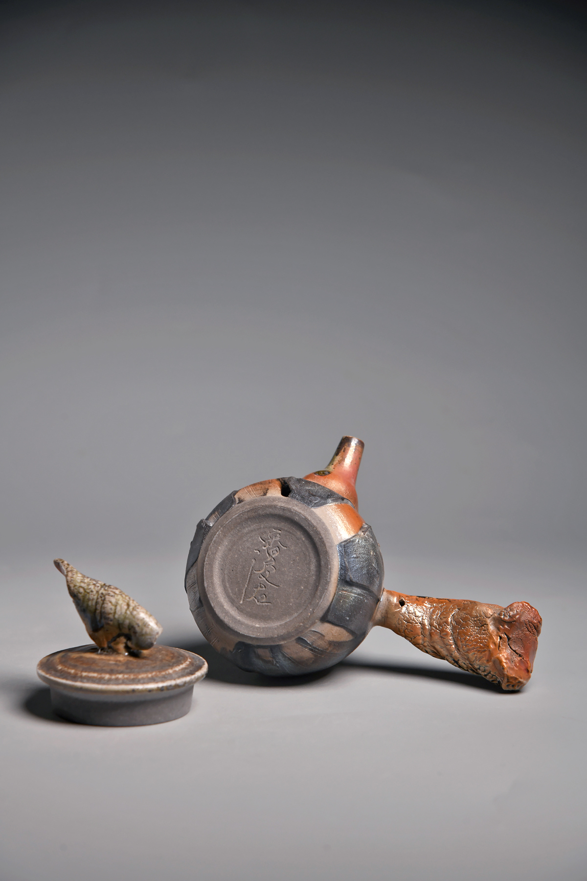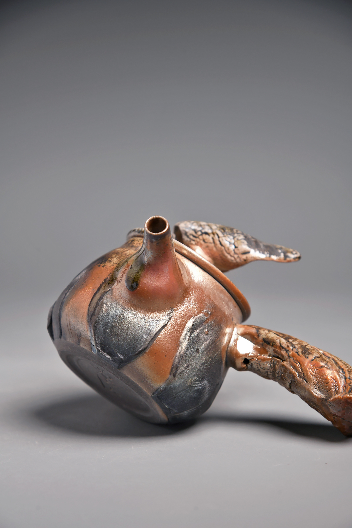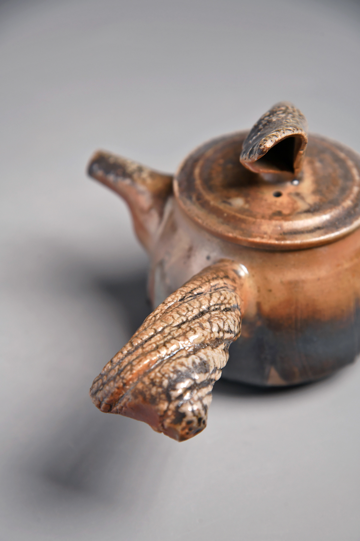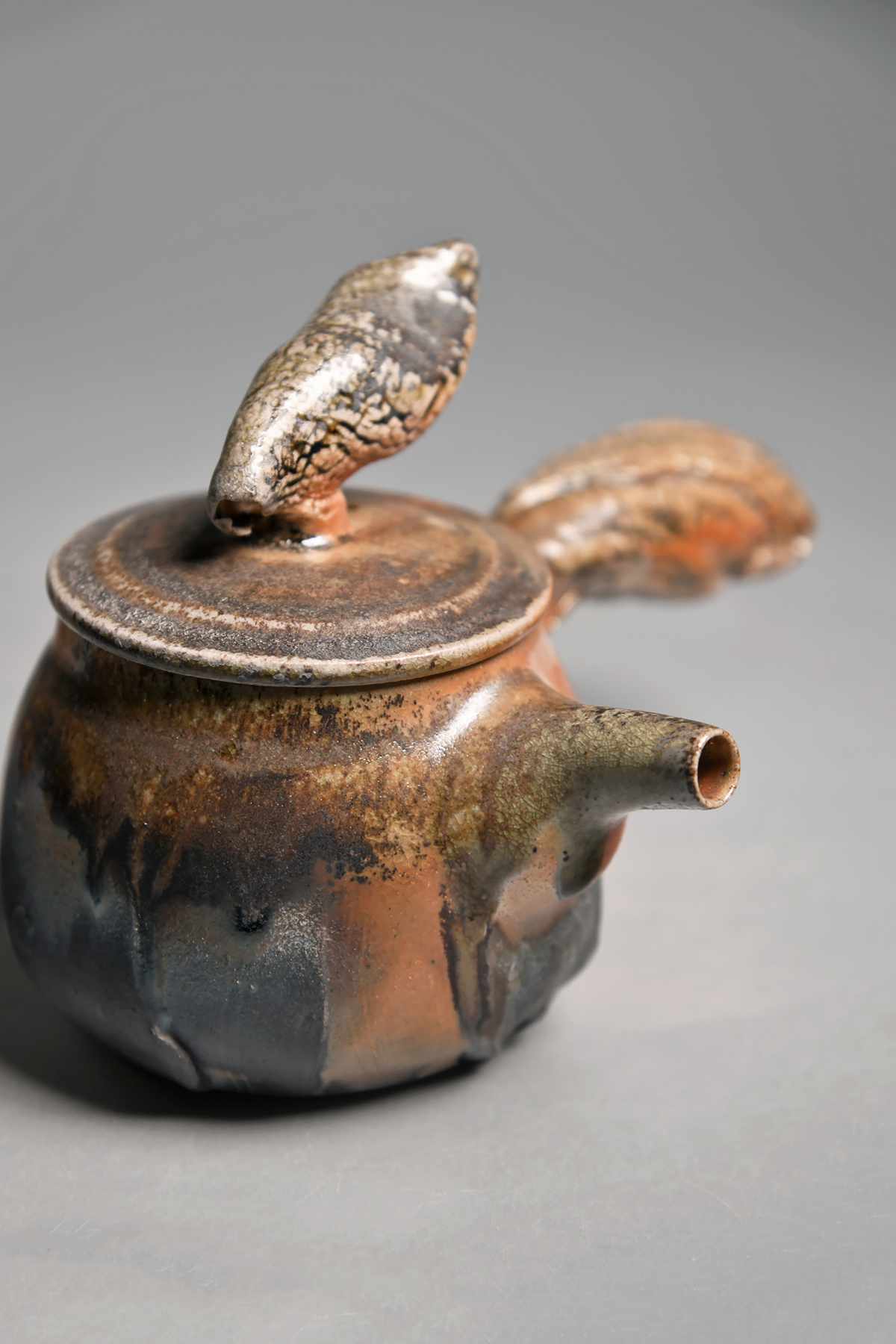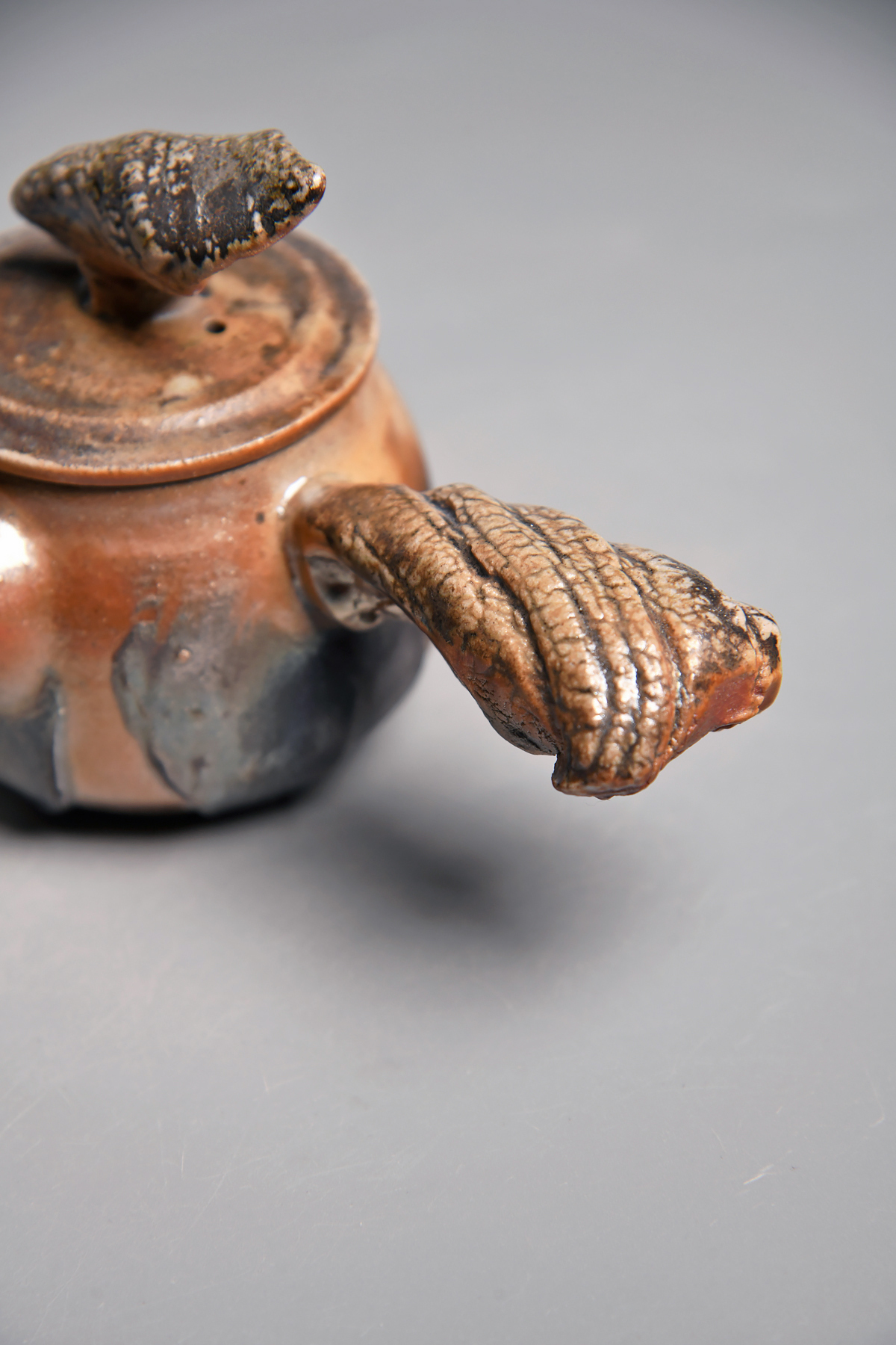 傳藝工坊 - 『松嵐。手捻肌理柴燒側把壺』孤品 藝術家/潘俊佑