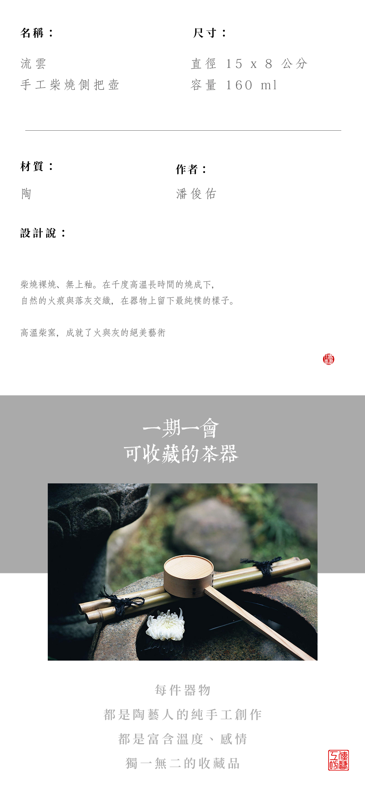 傳藝工坊 - 『流雲。手工柴燒側把壺』孤品 藝術家/潘俊佑