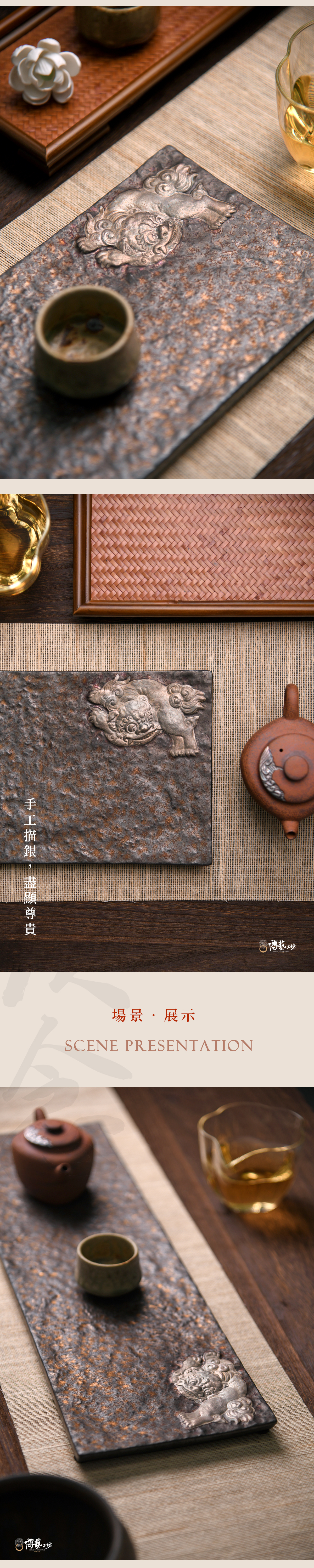 🔸 鎏金釉彩 + 手工描銀,長度適合擺放多個杯