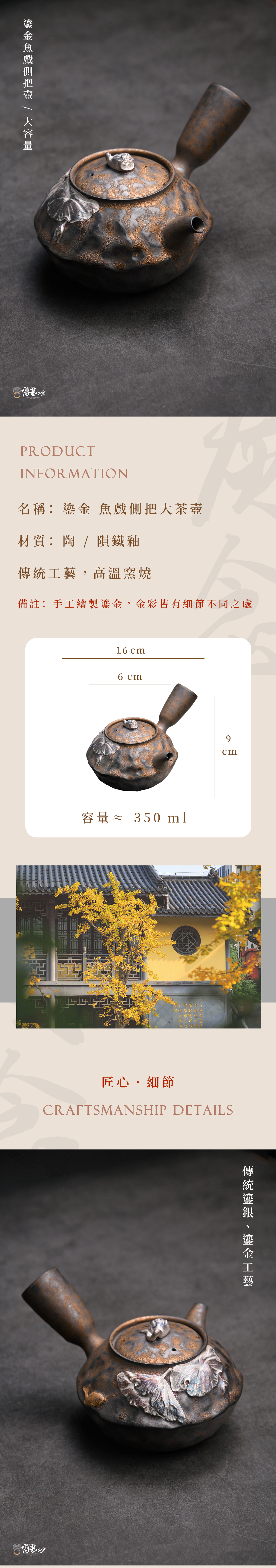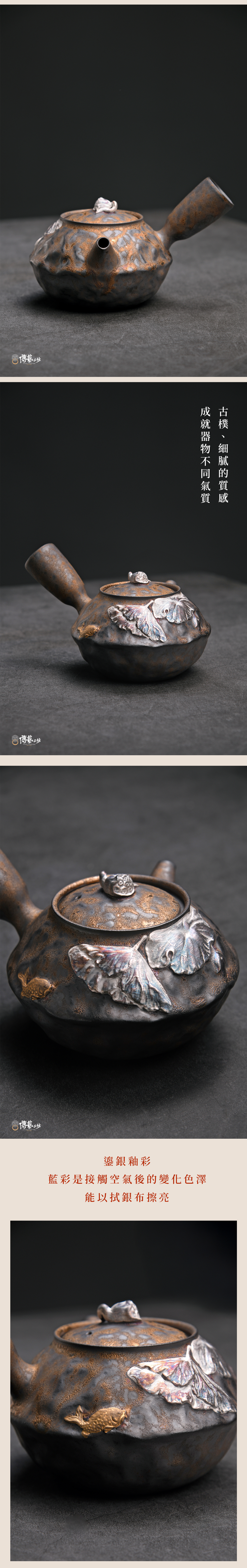🔸 古樸隕鐵釉燒製,手工鎏金、鎏銀,手工之處將略有微小差異